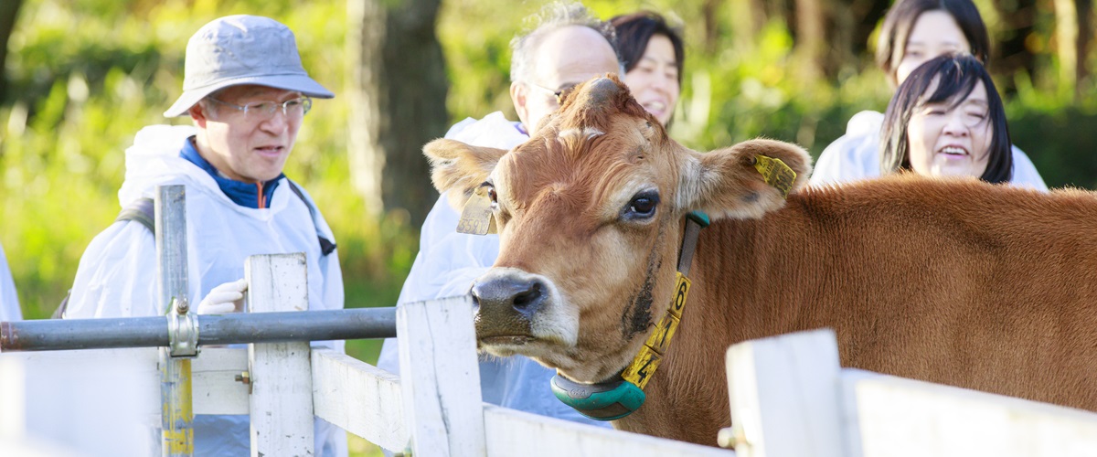 普段入ることのできない牧場エリアで、牛を間近で見学し触れ合えます。