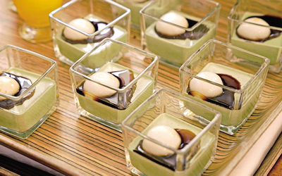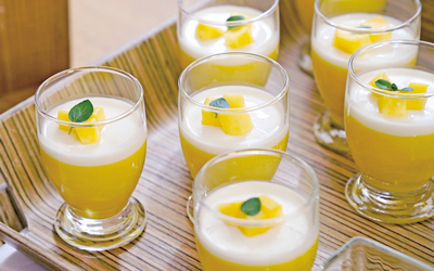 砂糖に頼らず、自然な甘さに仕上げたデザート。種類が豊富なので色々な味をお楽しみいただけるよう少量ずつご用意しています。口どけの良さや軽い食感にこだわっており、男性でも食べやすいと好評です。 |