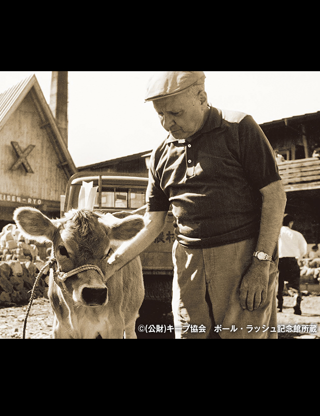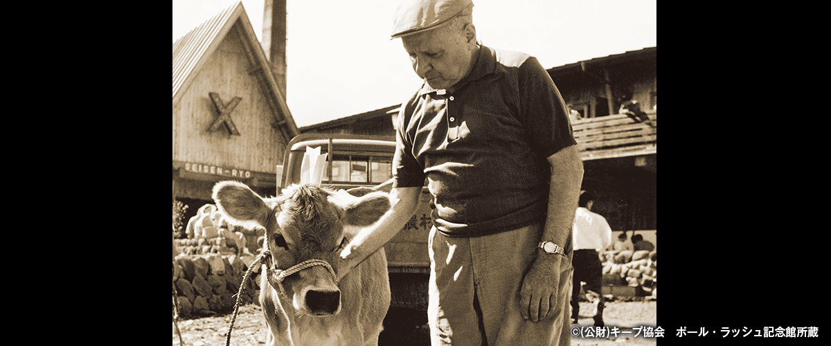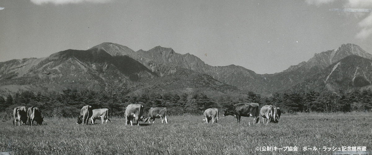 清泉寮にジャージー牛が初めて来たのは1951年頃。清里開拓の父と呼ばれる清泉寮の創設者ポール・ラッシュ博士がアメリカの篤志家より1頭の雄牛を寄付され、放牧を始めたのがきっかけです。