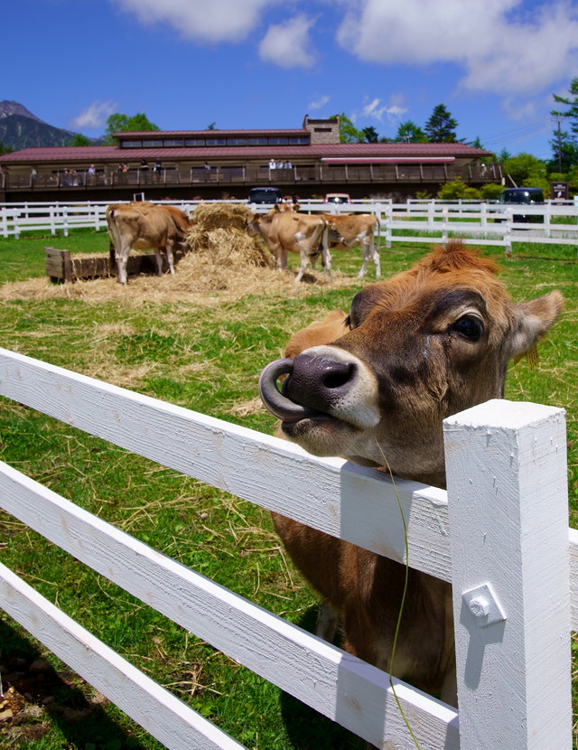 清泉寮のジャージー牛は新鮮な牧草を食べます。βカロテンを豊富に含んでいるので、牧草を食べて育つ牛からは薄淡い金色の「ゴールデンミルク」が絞られます。