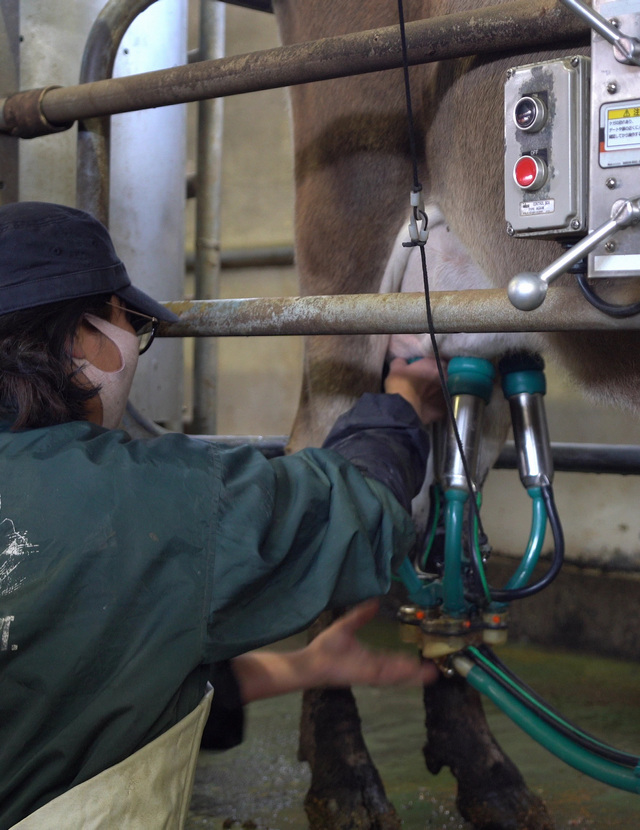 清泉寮のジャージー牛からは、乳脂肪分4.3~5.9(通常は3.6%)という濃厚な「ゴールデンミルク」が搾られます。高タンパクでビタミンやミネラルなどの栄養価も高く、魚に多く含まれるオメガ3系脂肪酸が高い割合で含まれているので、とても健康に良いです。乳量はホルスタインに比べ2/3程度しかなく飼育頭数も少ないため、大変貴重な牛乳でもあります。